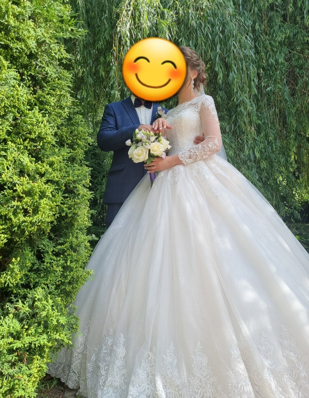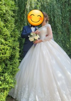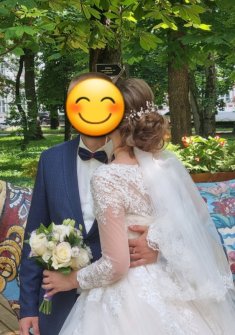 Шикарное свадебное платье. На солнышке переливается оттенком розового. Платье после торжества было в химчистке.