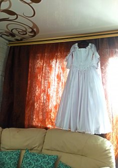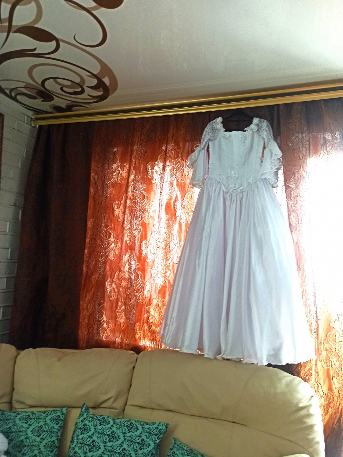 Платье исполнено в стиле VIII век. Из моды никогда не выходит. Подойдет романтичной, нежной девушке в этот светлый и важный день в её жизни. Фасон имеет три юбки, форму держит прекрасно. Платье с корсетом, что очень удобно регулировать посадку по фигуре невесты. Платье находится в г. Смоленске.